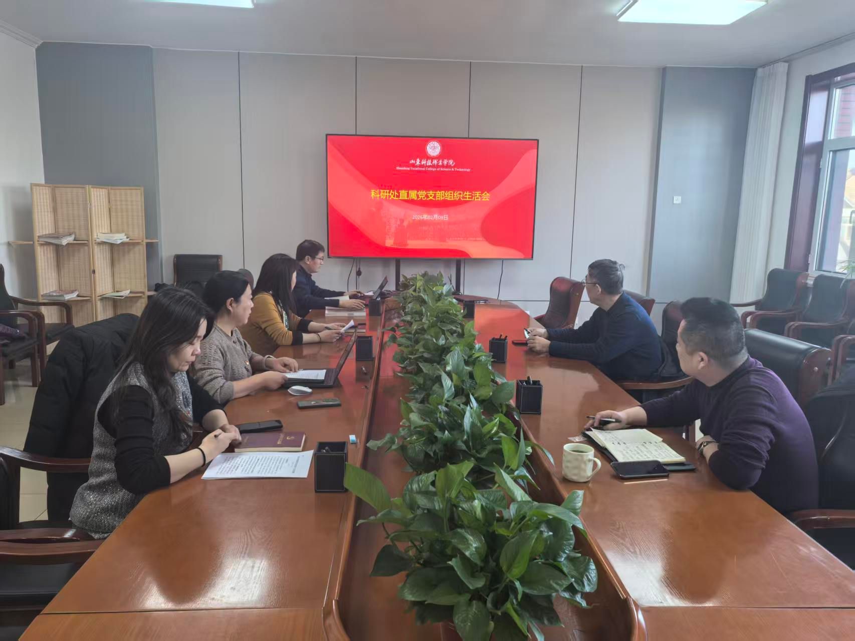 按照《中共山东科技职业学院委员会关于召开2025年度基层党组织组织生活会和开展民主评议党员的通知》要求,2026年2月9日,科研处直属党支部书记杨慧慧同志主持召开本支部2025年度组织生活会。学校指导员谭安华同志到会指导。